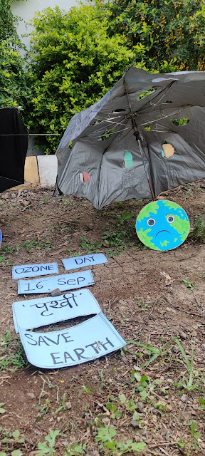 एक छत्री चांगली होती आणि दुसरी छिद्र पडलेली. यावरून ओझोन आवरणाला छिद्र पडल्यामुळे काय होऊ शकते हे सांगण्यात आले. या उपक्रमातून ओझोन चे महत्त्व सांगण्यात आले. यासाठी प्रशालेतील पर्यावरणाचे शिक्षक अभिज भानप यांनी मार्गदर्शन केले.