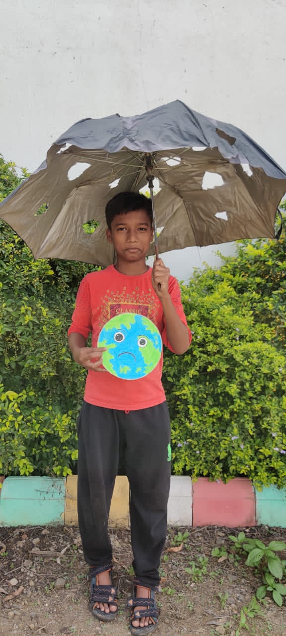 एक छत्री चांगली होती आणि दुसरी छिद्र पडलेली. यावरून ओझोन आवरणाला छिद्र पडल्यामुळे काय होऊ शकते हे सांगण्यात आले. या उपक्रमातून ओझोन चे महत्त्व सांगण्यात आले. यासाठी प्रशालेतील पर्यावरणाचे शिक्षक अभिज भानप यांनी मार्गदर्शन केले.