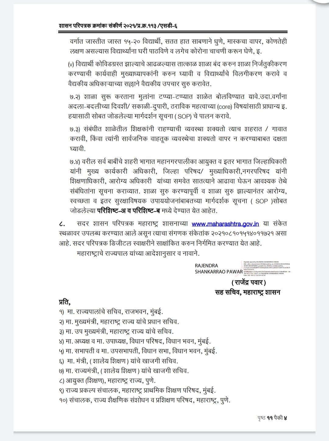 (ii) विद्यार्थ्यांच्या पालकांना गर्दी टाळण्यासाठी शाळेच्या परिसरात प्रवेश देऊ नये.
