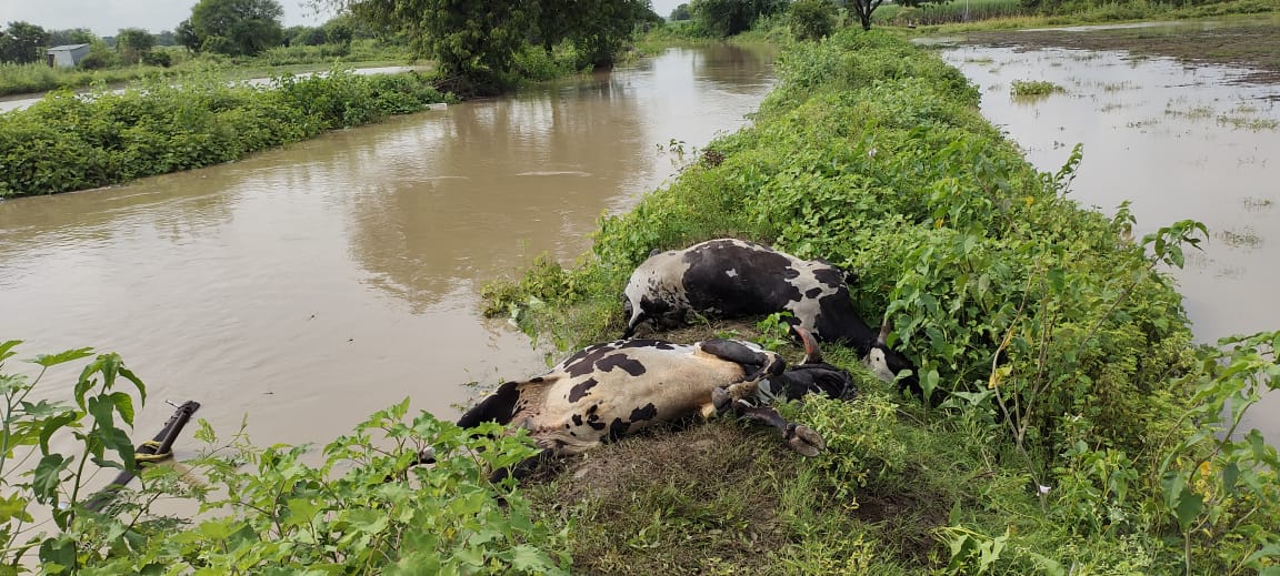 अपघात घडतात मागील वर्षी अशीच घटना घडली होती रविवारी सकाळी 9 वा बैलगाडी सेतुपुलावरून जात असताना अचानक पाण्याचा मोठया प्रमाणात लोंढा आला आणि बैलगाडी ही त्या प्रवाहात वाहून गेली दोन्ही बैलाचा मृत्यू झाला. त्यामुळे पंचक्रोशीत हळहळ व्यक्त होत आहे,