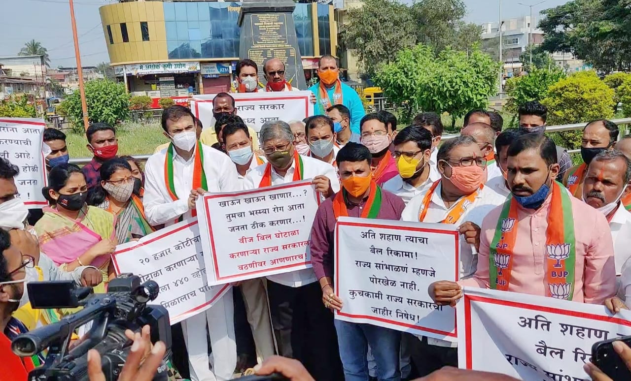भाजपातर्फे राज्यभर वीज बिलांची होळी; हजारो कार्यकर्त्यांचा सहभाग