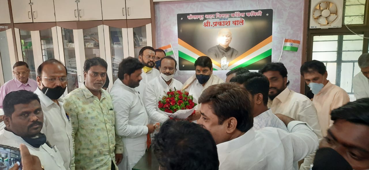 यावेळी माजी आमदार विश्वनाथ चाकोते सोमपा गटनेते चेतनभाऊ नरोटे, कार्याध्यक्ष अरुण शर्मा, महिला अध्यक्ष हेमाताई चिंचोळकर, नगरसेवक विनोद भोसले, प्रवीण निकाळजे, हाजी तौफीक हत्तुरे, नगरसेविका फिरदौस पटेल, अनुराधा काटकर, माजी नगरसेवक मनोज यलगुलवार, युवक काँग्रेस अध्यक्ष अंबादास बाबा करगुळे, NSUI जिल्हा अध्यक्ष गणेश डोंगरे, युवक काँग्रेस प्रदेश सरचिटणीस सुमीत भोसले, अनुसूचित जाती विभाग जिल्हा अध्यक्ष गौरव खरात, परिवहन सदस्य तिरुपती परकीपंडला, ब्लॉक अध्यक्ष अरुण साठे, सैफन शेख, अंबादास गुत्तिकोंडा, किसन मेकाले गुरुजी, नागनाथ कदम, राजन कामत, हाजिमलंग नदाफ, राहुल वर्धा, शौकत पठाण, हारून शेख, अशोक कलशेट्टी, हसीब नदाफ, चक्रपाणी गज्जम, अनिल मस्के, पंडित सातपुते, उपेंद्र ठाकर, सूर्यकांत शेरखाने, कय्यूम बलोलखान, रजाक कादरी, राहुल बोळकोटे, प्रमिला तुपलवंडे, सुमन जाधव, नूर अहमद नालवार, सुभाष वाघमारे, महेश लोंढे, सचिन शिंदे, संजय गायकवाड़, राजाभाऊ महाडिक, सोपान थोरात, श्रीकांत दासरी, यांच्यासह इतर पदाधिकारी कार्यकर्ते उपस्थित होते.