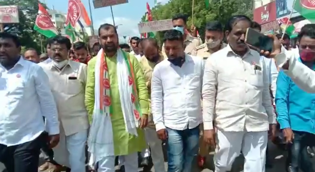 सोलापूर : ऊस उत्पादक शेतकऱ्यांना एफआरपी मिळावी या मागणीसाठी रयत क्रांती पक्षाचे संस्थापक आमदार सदाभाऊ खोत यांच्या नेतृत्वाखाली मंगळवारी सोलापुरात शेतकऱ्यांचा भव्य असा ऊस मोर्चा काढण्यात आला.