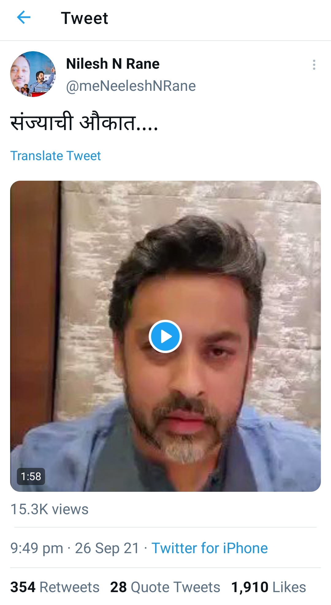 या टीकेवर नारायण राणे यांचे चिरंजीव निलेश राणे यांनी आपल्या ट्विटर अकाउंटवरून जोरदार उत्तर दिले आहे, संजय राऊत यांना थेट “संज्या तुझी औकात काय? असे म्हणून तू सत्तेत आहेस, सत्ता गेल्यावर काय होईल असा इशाराही त्यांनी दिला काय म्हणाले राणे पहा