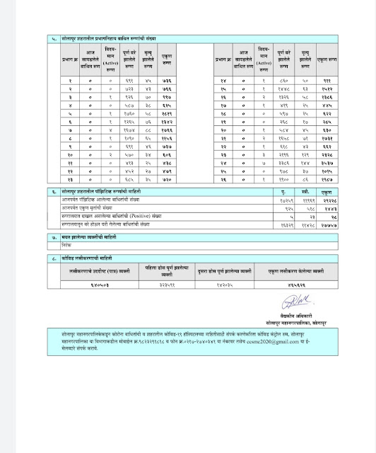 मात्र एकूणच या सर्व कोरोनाच्या परिस्थितीमध्ये सोलापूर शहरासाठी अतिशय मोठी आनंदाची बातमी दिनांक 11 सप्टेंबर रोजी पाहायला मिळाली. महानगरपालिकेच्या वतीने कोरोनाचा रिपोर्ट पाठवला जातो कोरोनाचा संसर्ग सुरू झाल्यापासून साधारण सतरा महिन्यांमध्ये शनिवार 11 सप्टेंबर हा दिवस अतिशय आनंदाचा आहे,