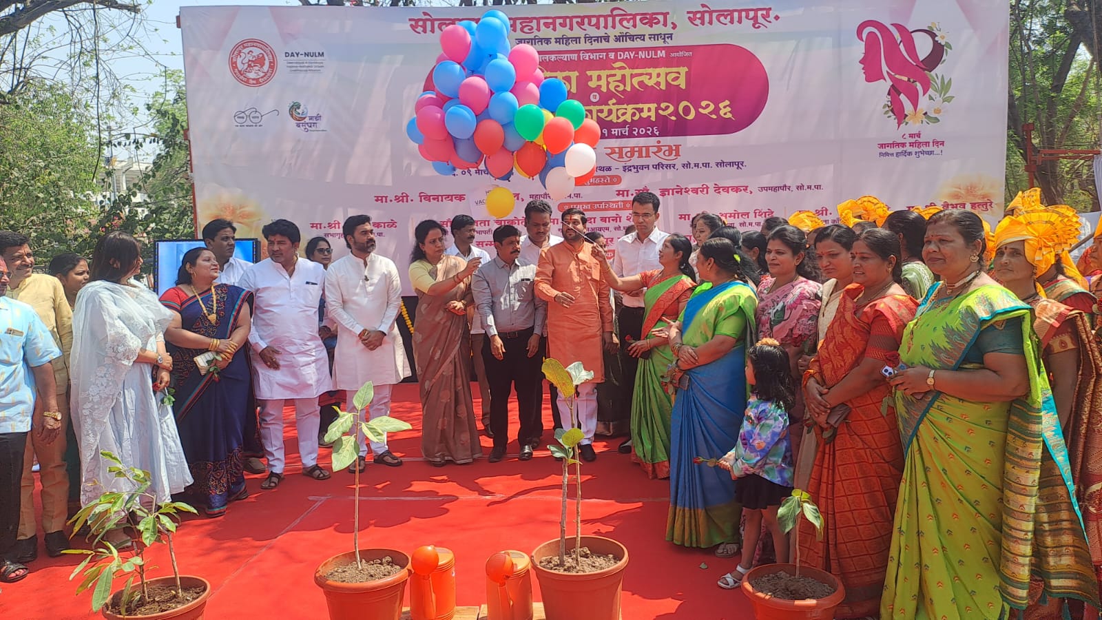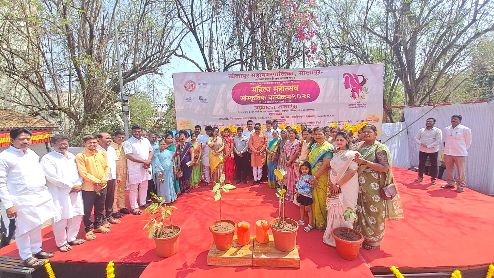 सोलापूर — सोलापूर महानगरपालिकेच्या महिला व बालकल्याण विभाग तसेच DAY-NULM यांच्या वतीने जागतिक महिला दिनाचे औचित्य साधून आयोजित करण्यात आलेल्या “महिला महोत्सव व सांस्कृतिक कार्यक्रम २०२६” या भव्य महोत्सवाचा उद्घाटन समारंभ आज इंद्रभुवन परिसर, सोलापूर येथे उत्साहात पार पडला.