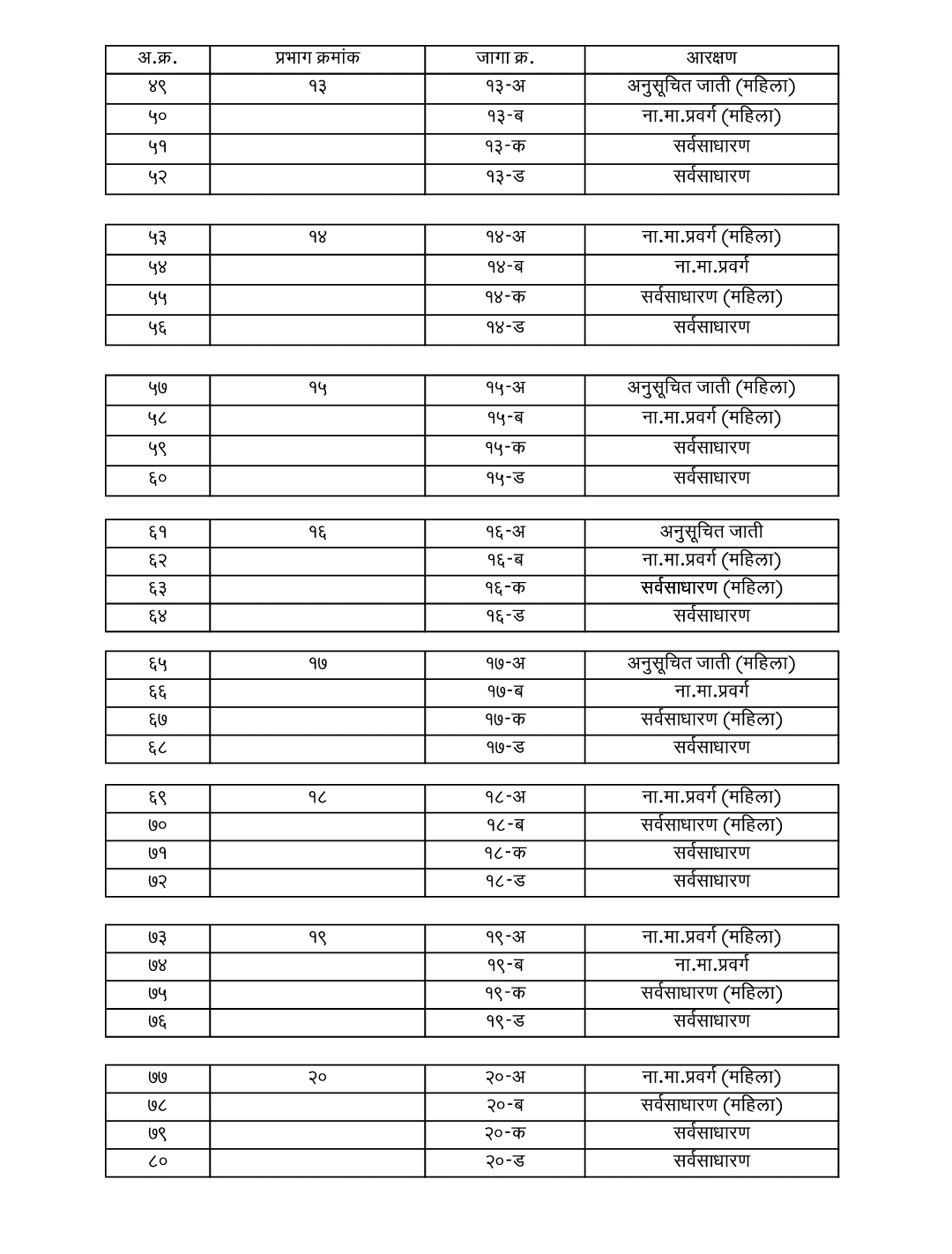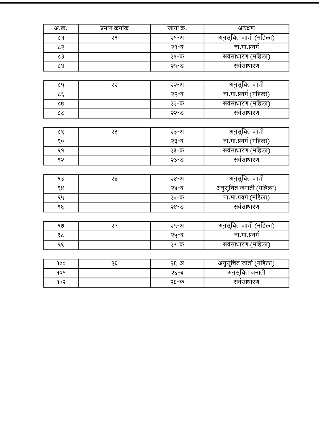 या प्रक्रिया दरम्यान नागरिकांच्या मागाराप्रवर्ग महिलाकरिता थेट आरक्षित झालेले प्रभाग क्रमांक 1, 2, 5, 16, 22. 23 झाले आहेत.