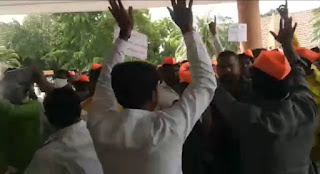 दुसऱ्या बाजूला मनिष काळजे यांच्या कार्यकर्त्यांनी विरोधात घोषणाबाजी करण्यास सुरुवात केली, मनीष काळजे आगे बढो हम तुम्हारे साथ है, अशी एकमेकांच्या विरोधातील घोषणाबाजीने शासकीय विश्रामगृहाचा परिसर दणाणून गेला होता शेवटी निरीक्षक विपुल पिंगळे यांनी बैठक रद्द केल्याचे समजले, याच वेळी महापालिकेचे विरोधी पक्षनेते अमोल शिंदे हे सुद्धा त्या ठिकाणी गेले मात्र दोन्ही कार्यकर्त्यांची एकमेकाच्या विरोधात घोषणाबाजी ऐकून त्यांनी समजावून सांगण्याचा प्रयत्न केला पण कोणी ऐकण्याच्या मनस्थितीत नव्हते, यावरून शिवसेनेतील गटबाजी हे चव्हाट्यावर आल्याचं चित्र आहे.