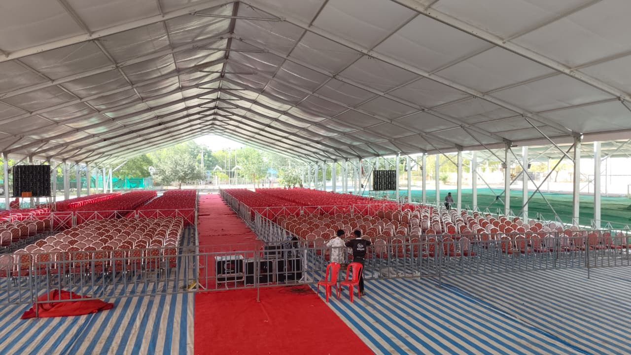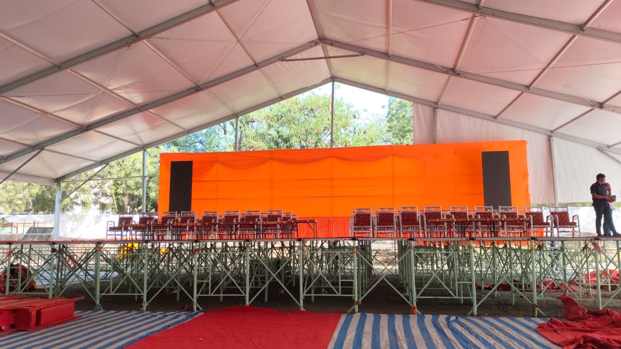 भगवा पडदा, 50 फुटाचा स्टेज, हजारो लोकांना बसण्याची व्यवस्था