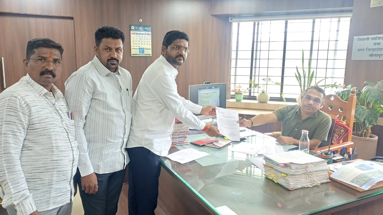 गुरुवारी विनोद भोसले यांच्यासह युवक अध्यक्ष गणेश डोंगरे भटक्या विमुक्त जाती जमातीचे अध्यक्ष युवराज जाधव यांच्या शिष्टमंडळाने निवासी उपजिल्हाधिकारी अभिजीत पाटील यांना निवेदन दिले.
