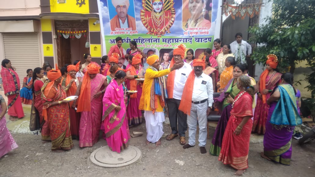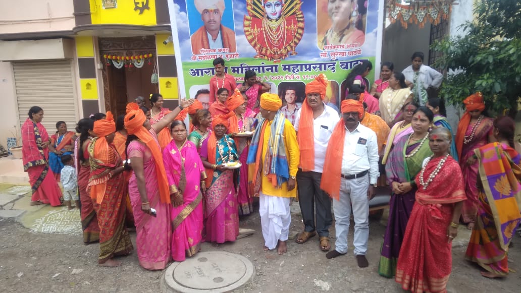 यांच्यावतीने हद्दवाढ भागात दीक्षित नगर इथे आराधी महिलांना महाप्रसादाचा वाटप करण्यात आले आहे.