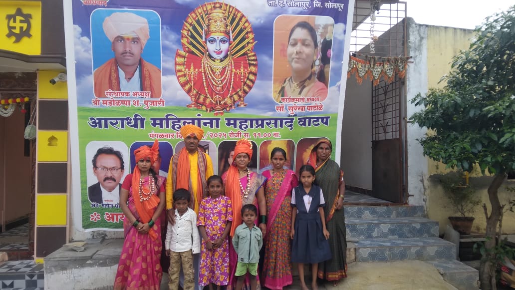 संस्थापक अध्यक्ष मडोळप्पा पुजारी व सुरेखा घाटोळे यांच्या अध्यक्षतेच्या खाली आराध्य महिलांना महाप्रसादाचा वाटप करण्यात आला. या कार्यक्रमास सोलापूर जिल्हा व शहर काँग्रेसचे प्रवक्ते नागनाथ कदम, सामाजिक कार्यकर्ते यशवंत फडतरे यांचे प्रमुख उपस्थिती होती.
