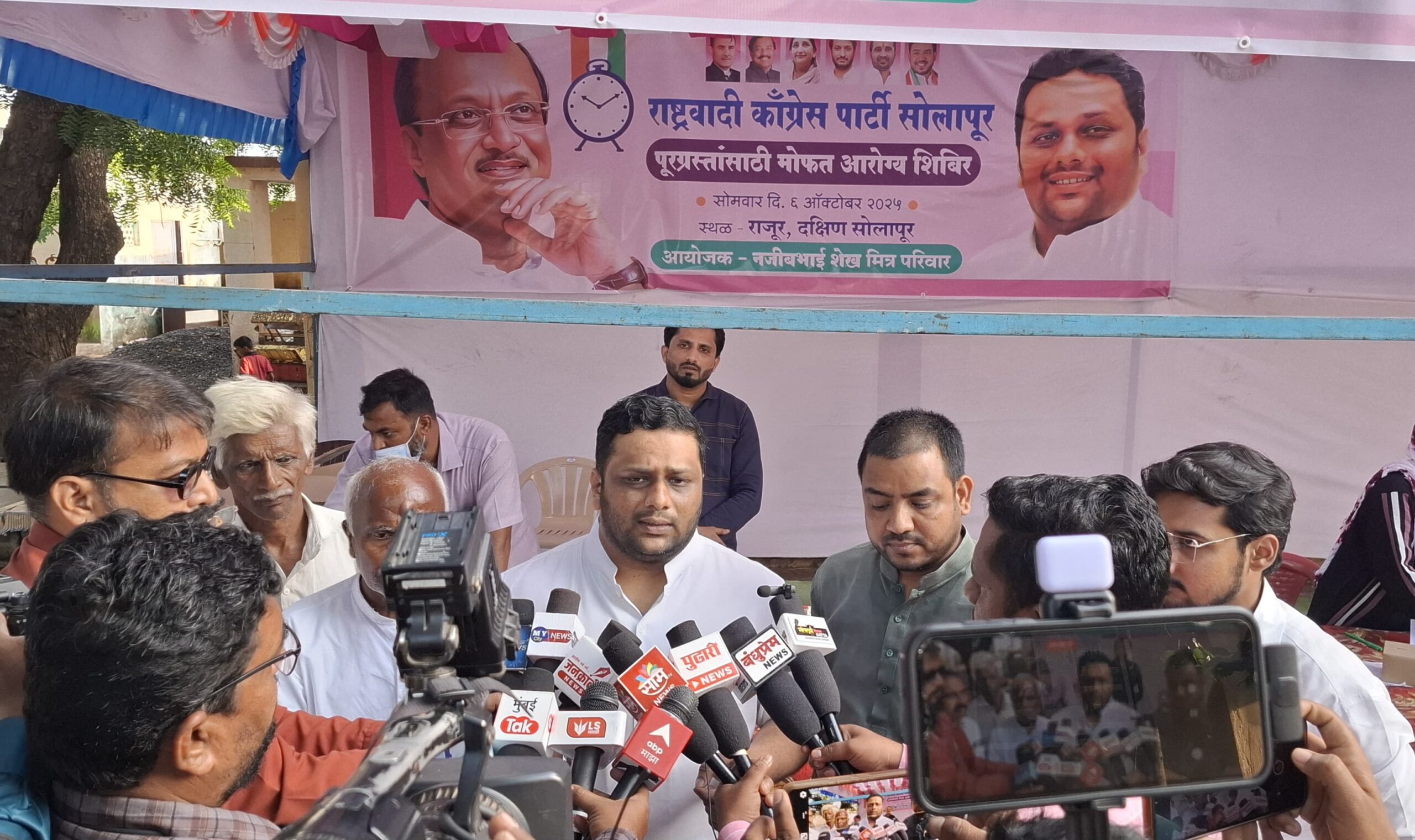 सीना नदीला आलेल्या महापुरामुळे सोलापूर जिल्ह्यातील अनेक गावांना मोठ्या प्रमाणावर फटका बसला होता. आता पाणी ओसरल्यानंतर पूरग्रस्त भागात आरोग्याच्या समस्या वाढताना दिसत आहेत. ही बाब लक्षात घेऊन राष्ट्रवादी काँग्रेस अजित पवार गटाचे नेते नजीब शेख यांच्या पुढाकाराने दक्षिण सोलापुरातील राजूर गावात आरोग्य शिबिराचे आयोजन करण्यात आले.