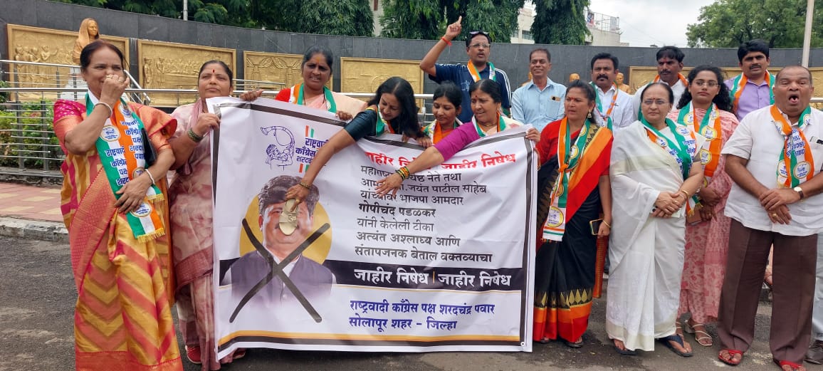 सोलापुरात शहराध्यक्ष सुधीर खरटमल आणि महिला अध्यक्ष सुनीता रोटे यांच्या नेतृत्वाखाली चार हुतात्मा स्मारकासमोर गोपीचंद पडळकर यांच्या प्रतिमेला जोडे मारण्यात आले. राष्ट्रवादीच्या कार्यकर्त्यांनी गोपीचंद यांची टोपीचंद म्हणून आणि मंगळसूत्र चोर म्हणून टर उडवली.