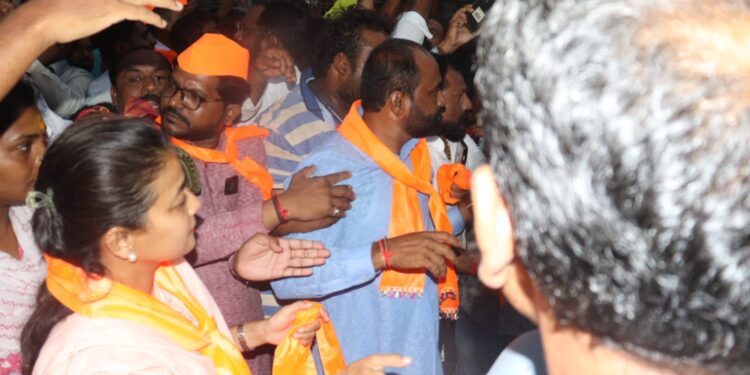 जरांगे पाटील हे कुणाचेही बुके हार स्वीकारत नसल्याचे समजल्यानंतर त्यांनी बुके बाजूला ठेवला आणि भगवा शेला सत्कारासाठी हातात घेतला. यावेळी प्रचंड गर्दी होती. प्रणिती शिंदे यांनी आपल्या हातातील भगवा शेला मनोज जरांगे पाटील यांना देत त्यांचा सत्कार केला. यावेळी काँग्रेस पक्षाचे माजी नगरसेवक विनोद भोसले, युवक अध्यक्ष गणेश डोंगरे, सकल मराठा समन्वयक माऊली पवार यांच्यासह मराठा बांधव हजारोंच्या संख्येने उपस्थित होते.