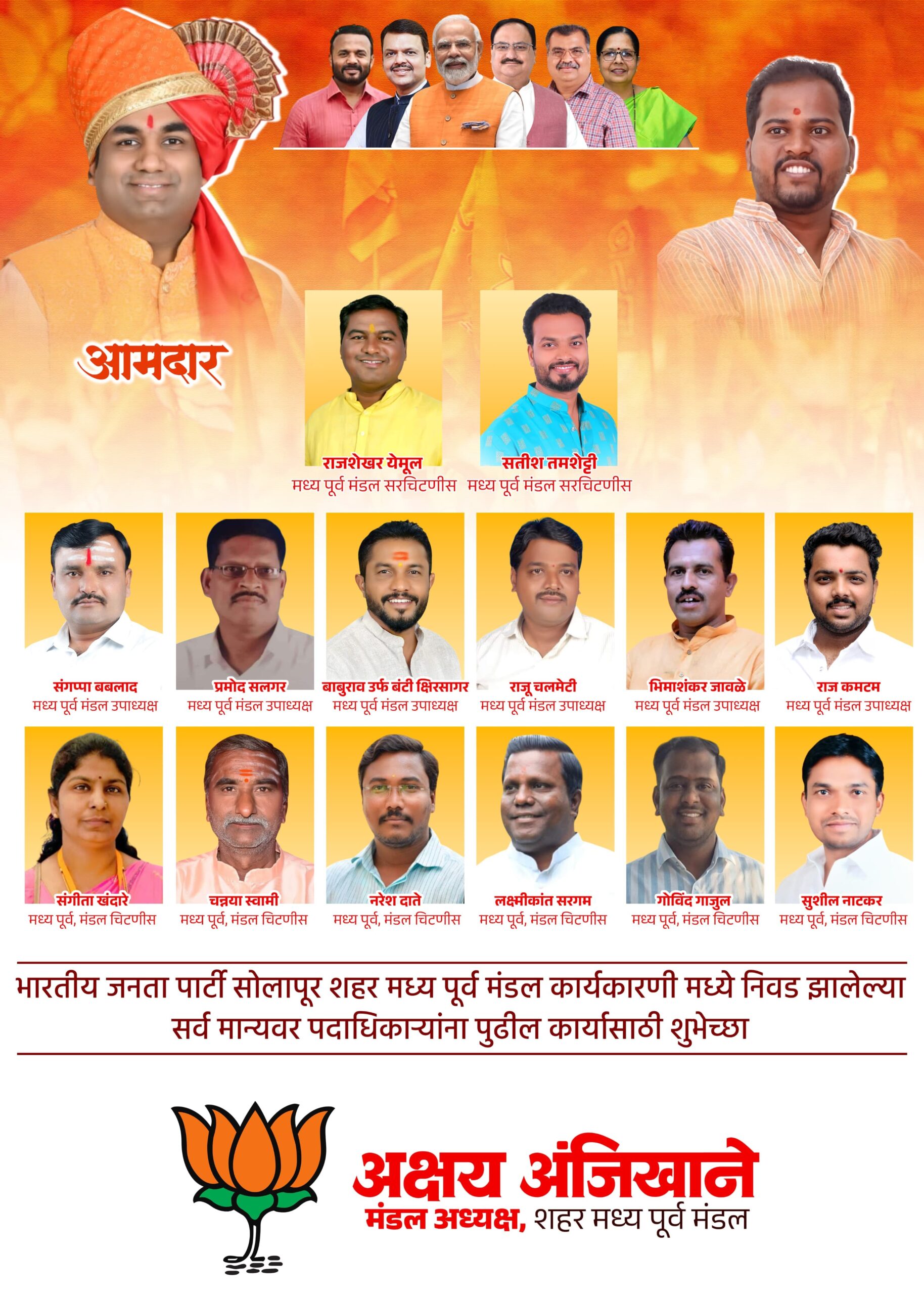 भाजपा सोलापूर मध्य पूर्व मंडल कार्यकारणी जाहीर ; या कार्यकर्त्यांना मिळाली संधी