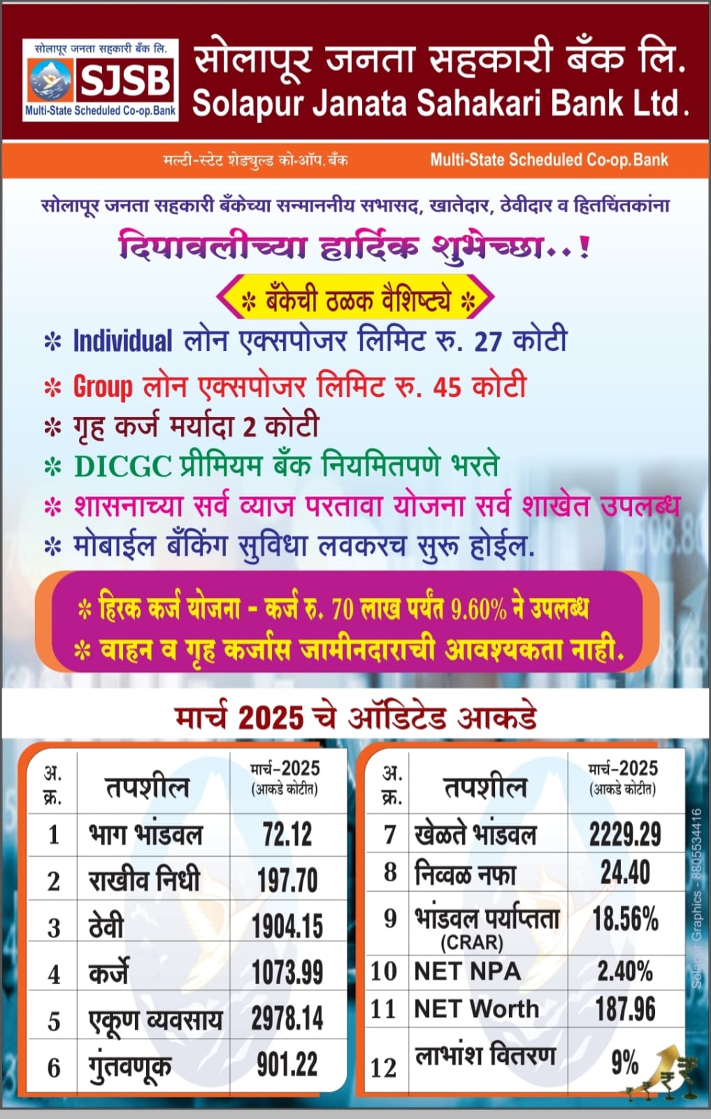 सोलापूर जनता सहकारी बँकेतर्फे दीपावली स्नेहमिलन उत्साहात